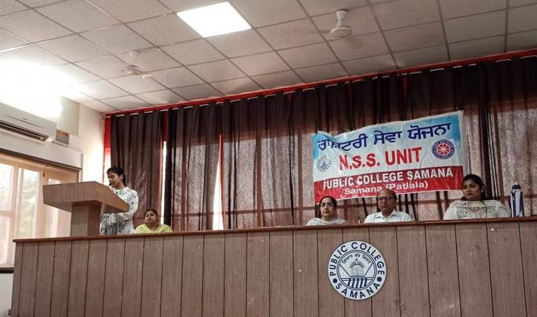 ਸਮਾਣਾ : ਪਬਲਿਕ ਕਾਲਜ ਸਮਾਣਾ ਦੇ ਐਨ.ਐਸ.ਐਸ.ਵਿਭਾਗ ਵੱਲੋ ਯੁਵਕ ਸੇਵਾਵਾਂ ਵਿਭਾਗ ਚੰਡੀਗੜ੍ਹ ਅਤੇ ਐਨ.ਐਸ.ਐਸ. ਵਿਭਾਗ ਪੰਜਾਬੀ ਯੂਨੀਵਰਸਿਟੀ ਪਟਿਆਲਾ ਦੇ ਦਿਸ਼ਾ-ਨਿਰਦੇਸ਼ਾਂ ਤਹਿਤ ਕਾਲਜ ਪ੍ਰਿੰਸੀਪਲ ਰਤਨ ਕੁਮਾਰ ਗਰਗ ਦੀ ਅਗਵਾਈ ਹੇਠ ਕਾਲਜ ਕੈਂਪਸ ਵਿਖੇ ਮੇਰਾ ਪਹਿਲਾ ਵੋਟ ਦੇਸ਼ ਦੇ ਨਾਮ ਪ੍ਰੋਗਰਾਮ ਦਾ ਆਯੋਜਨ ਕਰਵਾਇਆ ਗਿਆ, ਜਿਸ ਦੇ ਅੰਤਰਗਤ ਵਿਦਆਰਥੀਆਂ ਨੂੰ ਵੋਟ ਦੇ ਅਧਿਕਾਰ ਬਾਰੇ ਜਾਗਰੂਕ ਕੀਤਾ ਗਿਆ। ਕਾਲਜ ਪ੍ਰਿੰਸੀਪਲ ਸ਼੍ਰੀ ਰਤਨ ਕੁਮਾਰ ਗਰਗ ਨੇ ਵਿਦਆਰਥੀਆਂ ਨੂੰ ਆਪਣੀ ਵੋਟ ਦੇ ਅਧਿਕਾਰ ਦੀ ਸਹੀ ਵਰਤੋਂ ਕਰਨ ਲਈ ਪ੍ਰੇਰਿਤ ਕੀਤਾ। ਇਸ ਮੌਕੇ ਕਾਮਰਸ ਵਿਭਾਗ ਦੇ ਮੁੱਖੀ ਡਾ.ਹਰਕੀਰਤਨ ਕੌਰ, ਪੋਲੀਟੀਕਲ ਸਾਇੰਸ ਵਿਭਾਗ ਦੇ ਮੁੱਖੀ ਪ੍ਰੋ. ਹਰਪ੍ਰੀਤ ਕੌਰ ਤੋਂ ਇਲਾਵਾ ਐਨ.ਐਸ.ਐਸ. ਦੇ ਪ੍ਰੋਗਰਾਮ ਅਫਸਰ ਪ੍ਰੋ. ਨਛੱਤਰ ਸਿੰਘ, ਪ੍ਰੋ.ਪਲਵਿੰਦਰ ਕੌਰ, ਪ੍ਰੋ. ਨਿਕਤਾ, ਪ੍ਰੋ. ਹਮਿਤ ਕੁਮਾਰ, ਪ੍ਰੋ. ਜਗਦੇਵ ਸਿੰਘ, ਪ੍ਰੋ.ਕੁਲਜੀਤ ਕੌਰ ਅਤੇ ਸ਼੍ਰੀ ਜਸਬੀਰ ਸਿੰਘ ਤੋਂ ਇਲਾਵਾ ਸਮੂਹ ਐਨ.ਐਸ.ਐਸ.ਵਲੰਟੀਅਰਜ ਮੌਜੂਦ ਰਹੇ।