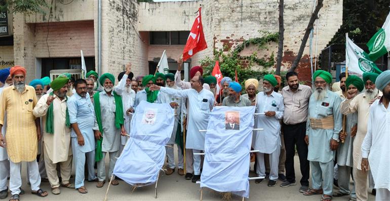 ਸੁਨਾਮ : ਭਾਰਤ ਅਮਰੀਕਾ ਮੁਕਤ ਵਪਾਰ ਸਮਝੌਤਿਆਂ ਦੇ ਵਿਰੋਧ ਵਿੱਚ ਬੁੱਧਵਾਰ ਨੂੰ ਸੁਨਾਮ ਦੇ ਐਸਡੀਐਮ ਦਫ਼ਤਰ ਸਾਹਮਣੇ ਸੰਯੁਕਤ ਕਿਸਾਨ ਮੋਰਚੇ ਦੇ ਸੱਦੇ ਤਹਿਤ ਇਕੱਤਰ ਹੋਏ ਕਿਸਾਨਾਂ ਨੇ ਮੋਦੀ ਅਤੇ ਟਰੰਪ ਦੇ ਪੁਤਲੇ ਫੂਕਕੇ ਜ਼ੋਰਦਾਰ ਨਾਅਰੇਬਾਜ਼ੀ ਕੀਤੀ। ਇਸ ਮੌਕੇ ਕਿਸਾਨਾਂ ਨੂੰ ਸੰਬੋਧਨ ਕਰਦਿਆਂ ਬੀ ਕੇ ਯੂ (ਡਕੌਂਦਾ) ਦੇ ਬਿੰਦਰਪਾਲ ਛਾਜਲੀ, ਕੁੱਲ ਹਿੰਦ ਕਿਸਾਨ ਸਭਾ ਦੇ ਕਾਮਰੇਡ ਵਰਿੰਦਰ ਕੌਸ਼ਿਕ, ਐਡਵੋਕੇਟ ਮਿੱਤ ਸਿੰਘ ਜਨਾਲ ਅਤੇ ਭਰਭੂਰ ਸਿੰਘ ਦੁੱਗਾਂ ਨੇ ਕਿਹਾ ਕਿ ਕੇਂਦਰ ਵਿਚਲੀ ਨਰਿੰਦਰ ਮੋਦੀ ਸਰਕਾਰ ਅਮਰੀਕਾ ਨਾਲ ਮੁਕਤ ਵਪਾਰ ਸਮਝੌਤਾ ਕਰਨਾ ਚਾਹੁੰਦੀ ਹੈ ਇਹ ਮੁਕਤ ਵਪਾਰ ਸਮਝੌਤਾ ਖੇਤੀ ਖੇਤਰ ਨੂੰ ਤਬਾਹ ਕਰਕੇ ਰੱਖ ਦੇਣਗੇ ਅਮਰੀਕਾ ਭਾਰਤ ਦੇ ਬਜ਼ਾਰ ਵਿੱਚ ਕਬਜ਼ਾ ਕਰਕੇ ਅਮਰੀਕੀ ਖੇਤੀ ਜਿਣਸਾਂ ਮੱਕੀ, ਕਪਾਹ, ਸੋਇਆਬੀਨ, ਤੇਲ, ਚੌਲ, ਦਾਲਾਂ, ਤੇਲ ਬੀਜ, ਦੁੱਧ ਤੋਂ ਬਣਨ ਵਾਲੀਆਂ ਵਸਤੂਆਂ ਭਾਰਤ ਦੇ ਬਜ਼ਾਰ ਵਿੱਚ ਵੇਚਣਾ ਚਾਹੁੰਦਾ। ਉਨ੍ਹਾਂ ਆਖਿਆ ਕਿ ਇਹ ਸਮਝੌਤਾ ਹੋਣ ਦੀ ਸੂਰਤ ਵਿੱਚ ਭਾਰਤ ਦਾ ਕਿਸਾਨ ਅਮਰੀਕੀ ਖੇਤੀ ਜਿਣਸਾਂ ਅਤੇ ਡੇਅਰੀ ਉਤਪਾਦ ਦਾ ਮੁਕਾਬਲਾ ਨਹੀਂ ਕਰ ਸਕਦਾ ਕਿਉਂਕਿ ਅਮਰੀਕਾ ਖੇਤੀ ਅਤੇ ਡੇਅਰੀ ਖੇਤਰ ਵਿੱਚ ਆਪਣੇ ਦੇਸ਼ ਦੇ ਕਿਸਾਨਾਂ ਨੂੰ ਭਾਰੀ ਸਬਸਿਡੀ ਦਿੰਦਾ ਹੈ। ਅਮਰੀਕਾ ਭਾਰਤ ਦੀ ਖੁਰਾਕ ਵਿਵਸਥਾ ਦੇ ਵੀ ਖਿਲਾਫ ਹੈ ਉਹ ਘੱਟੋ-ਘੱਟ ਸਮਰਥਨ ਮੁੱਲ ਨੂੰ ਵਪਾਰ ਦਾ ਇੱਕ ਵੱਡਾ ਵਿਗਾੜ ਦੱਸਦਾ ਹੈ। ਕਿਸਾਨ ਆਗੂਆਂ ਨੇ ਕੇਂਦਰ ਦੀ ਮੋਦੀ ਸਰਕਾਰ ਤੋਂ ਇਨ੍ਹਾਂ ਸਮਝੌਤਿਆਂ ਚੋ ਖੇਤੀ ਖੇਤਰ ਨੂੰ ਬਾਹਰ ਰੱਖਣ ਬਾਰੇ ਆਪਣਾ ਰੁਖ ਸਪੱਸ਼ਟ ਕਰਨ ਦੀ ਮੰਗ ਕੀਤੀ। ਇਸ ਮੌਕੇ ਮਹਿੰਦਰ ਸਿੰਘ ਲੌਂਗੋਵਾਲ, ਪ੍ਰਗਟ ਸਿੰਘ ਛਾਜਲੀ, ਗਗਨਦੀਪ ਸਿੰਘ ਚੱਠਾ, ਦਰਸ਼ਨ ਸਿੰਘ ਮੱਟੂ, ਹਰਭਗਵਾਨ ਸ਼ਰਮਾ, ਨਿਰਮਲ ਸਿੰਘ, ਦਲਜੀਤ ਸਿੰਘ ਗਿੱਲ, ਪ੍ਰਗਟ ਸਿੰਘ ਗੰਢੂਆਂ, ਹਰਬੰਸ ਸਿੰਘ ਗੋਬਿੰਦਗੜ੍ਹ ਜੇਜੀਆਂ, ਜਰਨੈਲ ਸਿੰਘ ਮੰਡੇਰ ਕਲਾਂ, ਮਿਸ਼ਰੀ ਸਿੰਘ, ਜਰਨੈਲ ਛਾਜਲੀ, ਭੋਲਾ ਛਾਜਲੀ, ਬਲਬੀਰ ਮਹੰਤ, ਗੁਰਤੇਜ ਦੁੱਗਾਂ, ਮਾਲੀ ਸਿੰਘ, ਗੁਰਚਰਨ ਦੁੱਗਾਂ, ਦਰਸ਼ਨ ਸਿੰਘ ਦੁੱਗਾਂ, ਪ੍ਰਿਤਪਾਲ ਮੰਡੇਰ ਕਲਾਂ, ਕਾਲਾ ਢਿੱਲੋਂ, ਭੋਲਾ ਸਿੰਘ, ਬਹਾਲ ਸਿੰਘ ਲੌਂਗੋਵਾਲ, ਬਲਬੀਰ ਸਿੰਘ ਕਿਲ੍ਹਾ ਭਰੀਆਂ, ਗੁਰਜੰਟ ਸਿੰਘ, ਰਾਮ ਸਿੰਘ, ਤਰਸੇਮ ਸਿੰਘ ਆਦਿ ਹਾਜ਼ਰ ਸਨ।