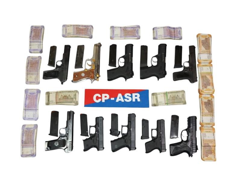 ਅੰਮ੍ਰਿਤਸਰ : ਮੁੱਖ ਮੰਤਰੀ ਭਗਵੰਤ ਸਿੰਘ ਮਾਨ ਦੇ ਨਿਰਦੇਸ਼ਾਂ ਅਨੁਸਾਰ ਪੰਜਾਬ ਨੂੰ ਸੁਰੱਖਿਅਤ ਸੂਬਾ ਬਣਾਉਣ ਲਈ ਚਲਾਈ ਜਾ ਰਹੀ ਮੁਹਿੰਮ ਤਹਿਤ ਖੁਫੀਆ ਇਤਲਾਹ `ਤੇ ਕਾਰਵਾਈ ਕਰਦਿਆਂ ਅੰਮ੍ਰਿਤਸਰ ਕਮਿਸ਼ਨਰੇਟ ਪੁਲਿਸ ਨੇ ਸਰਹੱਦ ਪਾਰੋਂ ਗੈਰ-ਕਾਨੂੰਨੀ ਹਥਿਆਰ ਸਪਲਾਈ ਵਿੱਚ ਸ਼ਾਮਲ , ਸੰਗਠਿਤ ਹਥਿਆਰ ਅਤੇ ਹਵਾਲਾ ਨੈੱਟਵਰਕ ਦੇ ਤਿੰਨ ਕਾਰਕੁੰਨਾਂ ਨੂੰ 10 ਆਧੁਨਿਕ ਹਥਿਆਰਾਂ ਅਤੇ 2.5 ਲੱਖ ਰੁਪਏ ਹਵਾਲਾ ਮਨੀ ਸਮੇਤ ਗ੍ਰਿਫ਼ਤਾਰ ਕਰਕੇ ਗਿਰੋਹ ਦਾ ਪਰਦਾਫ਼ਾਸ਼ ਕੀਤਾ ਹੈ । ਇਹ ਜਾਣਕਾਰੀ ਡਾਇਰੈਕਟਰ ਜਨਰਲ ਆਫ਼ ਪੁਲਿਸ (ਡੀਜੀਪੀ) ਪੰਜਾਬ ਗੌਰਵ ਯਾਦਵ ਨੇ ਅੱਜ ਇੱਥੇ ਦਿੱਤੀ। ਗ੍ਰਿਫ਼ਤਾਰ ਕੀਤੇ ਗਏ ਵਿਅਕਤੀਆਂ ਦੀ ਪਛਾਣ ਅਮਰਜੀਤ ਸਿੰਘ ਉਰਫ਼ ਬਾਊ (22) ਵਾਸੀ ਮਾਝੀ ਮੇਓ (ਅੰਮ੍ਰਿਤਸਰ), ਮਨਬੀਰ ਸਿੰਘ (26) ਵਾਸੀ ਵਾਨ ਤਾਰਾ ਸਿੰਘ (ਤਰਨਤਾਰਨ) ਅਤੇ ਮੁਹੰਮਦ ਤੌਫੀਕ ਖਾਨ ਉਰਫ਼ ਬੱਬਲੂ (42) ਵਾਸੀ ਗੌਤਮ ਨਗਰ, ਮੁੰਬਈ ਵਜੋਂ ਹੋਈ ਹੈ। ਬਰਾਮਦ ਕੀਤੇ ਗਏ ਹਥਿਆਰਾਂ ਵਿੱਚ ਤਿੰਨ .30 ਬੋਰ ਪੀਐਕਸ5 ਪਿਸਤੌਲਾਂ, ਤਿੰਨ 9 ਐਮਐਮ ਗਲਾਕ, ਇੱਕ 9ਐਮਐਮ ਬ੍ਰੇਟਾ ਅਤੇ ਤਿੰਨ .30 ਬੋਰ ਪਿਸਤੌਲ ਸ਼ਾਮਲ ਹਨ।
