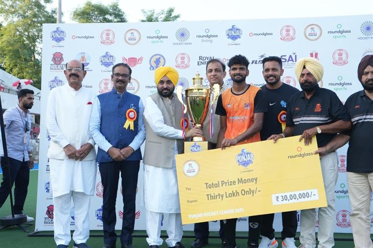 ਜਲੰਧਰ : ਪੰਜਾਬ ਦੇ ਮੁੱਖ ਮੰਤਰੀ ਭਗਵੰਤ ਸਿੰਘ ਮਾਨ ਨੇ ਅੱਜ ਸੂਬੇ ਵਿੱਚ ਹਾਕੀ ਦੀ ਪੁਰਾਤਨ ਸ਼ਾਨ ਨੂੰ ਬਹਾਲ ਕਰਨ ਦਾ ਪ੍ਰਣ ਲਿਆ। ਅੱਜ ਇੱਥੇ ਪੰਜਾਬ ਹਾਕੀ ਲੀਗ 2025 ਦੇ ਫਾਈਨਲ ਮੈਚ ਦੌਰਾਨ ਇਕੱਠ ਨੂੰ ਸੰਬੋਧਨ ਕਰਦਿਆਂ ਮੁੱਖ ਮੰਤਰੀ ਨੇ ਕਿਹਾ ਕਿ ਇਹ ਬਹੁਤ ਮਾਣ ਅਤੇ ਸੰਤੁਸ਼ਟੀ ਦੀ ਗੱਲ ਹੈ ਕਿ ਪਹਿਲੀ ਜੂਨੀਅਰ ਹਾਕੀ ਲੀਗ ਪੰਜਾਬ ਹਾਕੀ ਅਤੇ ਰਾਊਂਡ ਗਲਾਸ ਅਕਾਦਮੀ ਦੁਆਰਾ ਸ਼ੁਰੂ ਕੀਤੀ ਜਾ ਰਹੀ ਹੈ। ਉਨ੍ਹਾਂ ਕਿਹਾ ਕਿ ਇਹ ਹਾਕੀ ਦੇ ਖੇਤਰ ਵਿੱਚ ਹੁਣ ਤੱਕ ਦੀ ਸਭ ਤੋਂ ਵੱਧ ਇਨਾਮੀ ਰਾਸ਼ੀ ਵਾਲੀ ਲੀਗ ਹੈ। ਭਗਵੰਤ ਸਿੰਘ ਮਾਨ ਨੇ ਕਿਹਾ ਕਿ ਇਹ ਲੀਗ ਮੋਹਾਲੀ ਤੋਂ ਸ਼ੁਰੂ ਕੀਤੀ ਗਈ ਸੀ, ਜਿਸਦੇ ਫਾਈਨਲ ਜਲੰਧਰ ਵਿੱਚ ਖੇਡੇ ਜਾ ਰਹੇ ਹਨ। ਮੁੱਖ ਮੰਤਰੀ ਨੇ ਕਿਹਾ ਕਿ ਸੀਨੀਅਰ ਖਿਡਾਰੀਆਂ ਲਈ ਤਾਂ ਵੱਖ-ਵੱਖ ਲੀਗ ਮੈਚ ਕਰਵਾਏ ਜਾਂਦੇ ਹਨ, ਪਰ ਇਹ ਦੇਸ਼ ਵਿੱਚ ਸ਼ੁਰੂ ਕੀਤੀ ਗਈ ਪਹਿਲੀ ਜੂਨੀਅਰ ਲੀਗ ਹੈ। ਉਨ੍ਹਾਂ ਕਿਹਾ ਕਿ ਇਹ ਇੱਕ ਯਾਦਗਾਰੀ ਮੌਕਾ ਹੈ ਕਿਉਂਕਿ ਇੱਥੇ ਸੁਰਜੀਤ ਹਾਕੀ ਸਟੇਡੀਅਮ ਵਿੱਚ, ਪੰਜਾਬ ਦੇ ਮਹਾਨ ਹਾਕੀ ਖਿਡਾਰੀ, ਜਿਨ੍ਹਾਂ ਨੇ ਦੇਸ਼ ਦਾ ਨਾਮ ਰੌਸ਼ਨ ਕੀਤਾ ਹੈ, ਇਕੱਠੇ ਹੋਏ ਹਨ। ਭਗਵੰਤ ਸਿੰਘ ਮਾਨ ਨੇ ਕਿਹਾ ਕਿ ਪ੍ਰਦਰਸ਼ਨੀ ਮੈਚ ਵਿੱਚ, ਲੈਜੈਂਡ ਇਲੈਵਨ ਦਾ ਸਟਾਰ ਇਲੈਵਨ ਨਾਲ ਮੁਕਾਬਲਾ ਹੋਇਆ। ਉਨ੍ਹਾਂ ਅੱਗੇ ਕਿਹਾ ਕਿ ਲੈਜੈਂਡ ਇਲੈਵਨ ਦੀ ਅਗਵਾਈ ਭਾਰਤੀ ਹਾਕੀ ਟੀਮ ਦੇ ਸਾਬਕਾ ਕਪਤਾਨ ਓਲੰਪੀਅਨ ਗਗਨ ਅਜੀਤ ਸਿੰਘ ਕਰ ਰਹੇ ਸਨ, ਜੋ ਇਸ ਸਮੇਂ ਮਾਲੇਰਕੋਟਲਾ ਦੇ ਐਸਐਸਪੀ ਹਨ, ਜਦੋਂ ਕਿ ਸਟਾਰ ਇਲੈਵਨ ਦੀ ਅਗਵਾਈ ਮੌਜੂਦਾ ਭਾਰਤੀ ਹਾਕੀ ਟੀਮ ਦੇ ਕਪਤਾਨ ਹਰਮਨਪ੍ਰੀਤ ਸਿੰਘ ਕਰ ਰਹੇ ਸਨ।