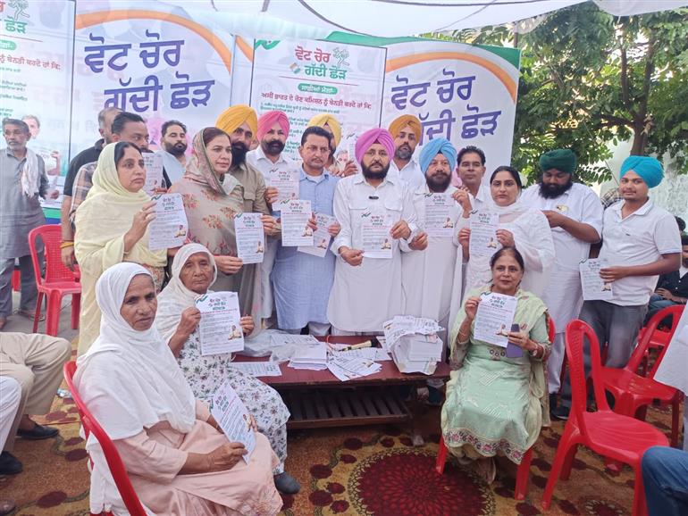 ਸੁਨਾਮ : ਕੁੱਲ ਹਿੰਦ ਕਾਂਗਰਸ ਕਮੇਟੀ ਦੇ ਦਿਸ਼ਾ ਨਿਰਦੇਸ਼ਾਂ ਤਹਿਤ ਲੋਕ ਸਭਾ ਮੈਂਬਰ ਰਾਹੁਲ ਗਾਂਧੀ ਵੱਲੋਂ ਮੁਲਕ ਅੰਦਰ ਸ਼ੁਰੂ ਕੀਤੀ ਵੋਟ ਚੋਰ, ਗੱਦੀ ਛੋੜ ਦਸਤਖ਼ਤੀ ਮੁਹਿੰਮ ਤਹਿਤ ਸੀਨੀਅਰ ਕਾਂਗਰਸੀ ਆਗੂ ਅਤੇ ਜ਼ਿਲ੍ਹਾ ਯੋਜਨਾ ਬੋਰਡ ਸੰਗਰੂਰ ਦੇ ਸਾਬਕਾ ਚੇਅਰਮੈਨ ਰਾਜਿੰਦਰ ਸਿੰਘ ਰਾਜਾ ਬੀਰਕਲਾਂ ਨੇ ਤਾਜ਼ ਸਿਟੀ ਸੁਨਾਮ ਵਿਖੇ ਪਾਰਟੀ ਆਗੂਆਂ ਅਤੇ ਵਰਕਰਾਂ ਦੀ ਭਰਵੀਂ ਮੀਟਿੰਗ ਦਾ ਆਯੋਜਨ ਕਰਕੇ ਦਸਤਖ਼ਤੀ ਮੁਹਿੰਮ ਸ਼ੁਰੂ ਕੀਤੀ। ਇਸ ਮੌਕੇ ਹਲਕਾ ਸੁਨਾਮ ਦੇ ਕੋਆਰਡੀਨੇਟਰ ਗੁਰਪਿਆਰ ਸਿੰਘ ਧੂਰਾ, ਬਲਾਕ ਪ੍ਰਧਾਨ ਮਨਪ੍ਰੀਤ ਸਿੰਘ ਮਨੀ ਵੜ੍ਹੈਚ, ਕਾਂਗਰਸ ਕਿਸਾਨ ਸੈੱਲ ਦੇ ਜ਼ਿਲ੍ਹਾ ਪ੍ਰਧਾਨ ਹਰਭਜਨ ਸਿੰਘ ਜਖੇਪਲ, ਮਹਿਲਾ ਕਾਂਗਰਸ ਦੀ ਬਲਾਕ ਪ੍ਰਧਾਨ ਸ਼ਸ਼ੀ ਬਾਲਾ, ਜਸਵੰਤ ਸਿੰਘ ਭੰਮ ਤੋਂ ਇਲਾਵਾ ਅਵਤਾਰ ਸਿੰਘ ਤਾਰੀ, ਮਲਕੀਤ ਸਿੰਘ ਤੋਲਾਵਾਲ, ਅਜੇਵੀਰ ਸਿੰਘ ਚਹਿਲ, ਕਰਮਜੀਤ ਕੌਰ ਮਾਡਲ ਟਾਊਨ, ਨਰੇਸ਼ ਸ਼ਰਮਾ, ਪ੍ਰਮੋਦ ਅਵਸਥੀ, ਹਰਜੀਤ ਕੌਰ ਝਾੜੋਂ, ਸਾਬਕਾ ਸਰਪੰਚ ਪਰਮਜੀਤ ਕੌਰ ਨਾਗਰਾ ਸਮੇਤ ਵੱਡੀ ਗਿਣਤੀ ਵਿੱਚ ਪਾਰਟੀ ਆਗੂ ਹਾਜ਼ਰ ਸਨ। ਮੀਟਿੰਗ ਨੂੰ ਸੰਬੋਧਨ ਕਰਦਿਆਂ ਰਾਜਿੰਦਰ ਸਿੰਘ ਰਾਜਾ ਬੀਰਕਲਾਂ, ਮਨਪ੍ਰੀਤ ਸਿੰਘ ਮਨੀ ਵੜ੍ਹੈਚ ਅਤੇ ਹਰਭਜਨ ਸਿੰਘ ਜਖੇਪਲ ਨੇ ਆਖਿਆ ਕਿ ਭਾਜਪਾ ਦੀਆਂ ਸ਼ਰਾਰਤ ਪੂਰਨ ਕਾਰਵਾਈਆਂ ਨੂੰ ਲੋਕ ਸਭਾ ਮੈਂਬਰ ਰਾਹੁਲ ਗਾਂਧੀ ਨੇ ਮੁਲਕ ਦੀ ਜਨਤਾ ਸਾਹਮਣੇ ਨੰਗਾ ਕੀਤਾ ਹੈ। ਉਨ੍ਹਾਂ ਆਖਿਆ ਕਿ ਭਾਰਤੀ ਜਨਤਾ ਪਾਰਟੀ ਨੇ ਚੋਣ ਕਮਿਸ਼ਨ ਦੀਆਂ ਸ਼ਕਤੀਆਂ ਨੂੰ ਵੀ ਆਪਣੇ ਸਵਾਰਥਾਂ ਲਈ ਵਰਤਿਆ ਹੈ। ਬੁਲਾਰਿਆਂ ਨੇ ਕਿਹਾ ਕਿ ਦੇਸ਼ ਦੀ ਜਨਤਾ ਭਾਜਪਾ ਦੀਆਂ ਚਾਲਾਂ ਨੂੰ ਸਮਝ ਚੁੱਕੀ ਹੈ, ਭਵਿੱਖ ਵਿੱਚ ਲੋਕ ਭਾਜਪਾ ਨੂੰ ਦੇਸ਼ ਦੀ ਰਾਜ ਸਤਾ ਤੋਂ ਲਾਂਭੇ ਕਰਨ ਲਈ ਤਿਆਰ ਬੈਠੇ ਹੋਏ ਹਨ। ਚੇਅਰਮੈਨ ਰਾਜਾ ਬੀਰਕਲਾਂ ਨੇ ਦੱਸਿਆ ਕਿ ਵੋਟ ਚੋਰ ਗੱਦੀ ਛੋੜ ਦਸਤਖ਼ਤੀ ਮੁਹਿੰਮ ਨੂੰ ਸੁਨਾਮ ਵਿਧਾਨ ਸਭਾ ਹਲਕੇ ਦੇ ਪਿੰਡ ਪਿੰਡ ਵਿੱਚ ਲੈ ਜਾਇਆ ਜਾਵੇਗਾ ਤਾਂ ਜੋ ਭਾਜਪਾ ਦੀਆਂ ਸ਼ਰਾਰਤ ਪੂਰਨ ਕਾਰਵਾਈਆਂ ਦਾ ਪਤਾ ਹਰ ਬੂਥ ਪੱਧਰ ਤੇ ਲਗਾਇਆ ਜਾ ਸਕੇ। ਉਨ੍ਹਾਂ ਆਖਿਆ ਕਿ ਸੂਬੇ ਦੀ ਭਗਵੰਤ ਮਾਨ ਸਰਕਾਰ ਨੇ ਪੰਜਾਬ ਨੂੰ ਆਰਥਿਕ ਕੰਗਾਲੀ ਦੀ ਕਗਾਰ ਤੇ ਪਹੁੰਚਾ ਦਿੱਤਾ ਹੈ। ਸਰਕਾਰ ਦੀਆਂ ਗ਼ਲਤ ਨੀਤੀਆਂ ਦਾ ਖਮਿਆਜ਼ਾ ਲੋਕਾਂ ਨੂੰ ਭੁਗਤਣਾ ਪਵੇਗਾ।