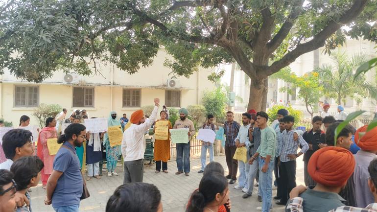 ਪੰਜਾਬ ਸਟੂਡੈਂਟਸ ਯੂਨੀਅਨ ਵੱਲੋਂ ਪ੍ਰਦਰਸ਼ਨ ਦੇ ਅਖੀਰ ਵਿੱਚ ਪੰਜਾਬ ਯੂਨੀਵਰਸਿਟੀ ਦੀ ਸੈਨਟ ਭੰਗ ਕਰਨ ਦੇ ਖਿਲਾਫ਼ ਵਿਰੋਧ ਦਾ ਮਤਾ ਪਾਸ ਕੀਤਾ ਗਿਆ। ਉਨਾਂ ਕਿਹਾ ਕਿ ਇਹ ਸੰਗੀ ਢਾਂਚੇ ਉੱਪਰ ਹਮਲਾ ਹੈ ਅਤੇ ਪੰਜਾਬ ਪੁਨਰਗਠਨ ਐਕਟ ਵਿੱਚ ਸੋਧ ਕਰਕੇ ਪੰਜਾਬ ਯੂਨੀਵਰਸਿਟੀ ਨੂੰ ਰਾਜ ਦੀ ਯੂਨੀਵਰਸਿਟੀ ਘੋਸ਼ਿਤ ਕਰਨਾ ਚਾਹੀਦਾ ਹੈ।
