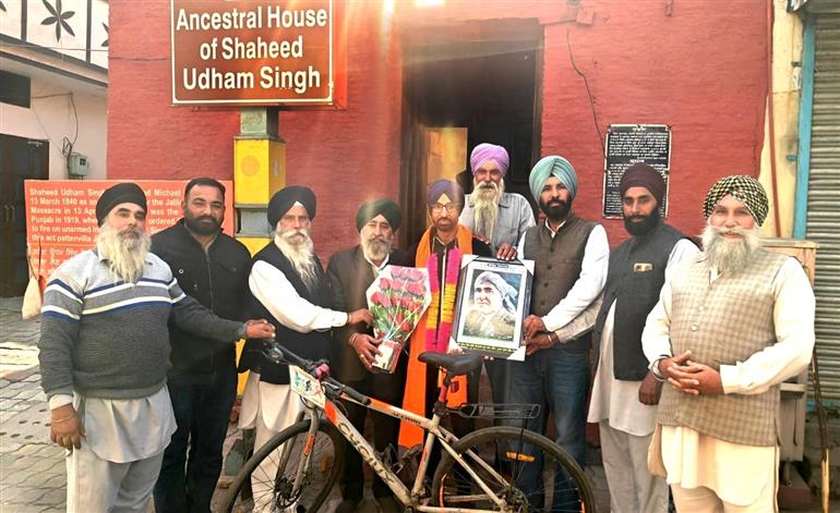 ਸੁਨਾਮ : ਸ਼ਹੀਦ ਊਧਮ ਸਿੰਘ ਦੀ ਜਨਮ ਭੂਮੀ ਸੁਨਾਮ ਦੇ ਜੰਮਪਲ ਨਾਮਵਰ ਸਾਈਕਲਿਸਟ ਮਨਮੋਹਨ ਸਿੰਘ ਨੇ 4 ਨਵੰਬਰ ਤੋਂ ਕੈਂਸਰ ਮੁਕਤ ਭਾਰਤ ਅਭਿਆਨ ਸਾਈਕਲ ਯਾਤਰਾ ਸ਼ੁਰੂ ਕੀਤੀ ਸੀ ਉਸ ਤਹਿਤ ਪੂਰੇ ਦੇਸ਼ ਦੇ ਲੋਕਾਂ ਨੂੰ ਕੈਂਸਰ ਪ੍ਰਤੀ ਜਾਗ੍ਰਿਤ ਕਰਨ ਲਈ ਦਿੱਲੀ ਗੋਲਡਨ ਕੋਰੀਡੋਰ ਤੋਂ ਸ਼ੁਰੂ ਕਰਕੇ 32 ਦਿਨਾਂ ਵਿੱਚ ਮੁੰਬਈ, ਚੈਨਈ,ਕਲਕੱਤਾ ਤੋਂ ਵਾਪਸੀ ਦਿੱਲੀ ਤੱਕ 6300 ਕਿਲੋਮੀਟਰ ਦੀ ਸਾਈਕਲ ਯਾਤਰਾ ਕਰਕੇ ਵਾਪਸੀ ਕੀਤੀ ਹੈ। ਇਸ ਸਮਾਜ ਸੇਵਾ ਦੇ ਕਾਰਜ ਦੀ ਸਲਾਘਾ ਕਰਦਿਆਂ ਸ਼ਹੀਦ ਊਧਮ ਸਿੰਘ ਇੰਟਰਨੈਸ਼ਨਲ ਕੰਬੋਜ ਮਹਾਂਸਭਾ ਦੇ ਪ੍ਰਧਾਨ ਹਰਦਿਆਲ ਸਿੰਘ ਕੰਬੋਜ ਅਤੇ ਸਾਥੀਆਂ ਨੇ ਸਾਈਕਲਿਸਟ ਮਨਮੋਹਨ ਸਿੰਘ ਨੂੰ ਇਸ ਵੱਡੀ ਸਮਾਜ ਸੇਵਾ ਬਦਲੇ ਸ਼ਹੀਦ ਊਧਮ ਸਿੰਘ ਦੇ ਜੱਦੀ ਘਰ ਵਿਖੇ ਸਨਮਾਨਿਤ ਕੀਤਾ ਗਿਆ। ਸਾਈਕਲਿਸਟ ਮਨਮੋਹਨ ਸਿੰਘ ਨੇ ਇਸ ਤੋਂ ਪਹਿਲਾਂ ਵੀ ਵੋਟਰ ਅਭਿਆਨ ਪੰਜਾਬ, ਕਸ਼ਮੀਰ ਤੋਂ ਕੰਨਿਆ ਕੁਮਾਰੀ ਯਾਤਰਾ, ਪੰਜ ਧਾਮ ਯਾਤਰਾ ਅਤੇ ਸੁਨਾਮ ਤੋਂ ਲੇਹ ਤੱਕ ਸਾਈਕਲ ਯਾਤਰਾ ਦੇ ਵੱਡੇ ਰਿਕਾਰਡ ਬਣਾਏ ਹਨ। ਮਨਮੋਹਨ ਸਿੰਘ ਦੇ ਕੈਂਸਰ ਪ੍ਰਤੀ ਜਾਗਰੂਕ ਕਰਨ ਦੇ ਇਸ ਸਮਾਜ ਸੇਵੀ ਉਪਰਾਲੇ ਦੀ ਜਿਤਨੀ ਸ਼ਲਾਘਾ ਕੀਤੀ ਜਾਵੇ ਥੋੜੀ ਹੈ, ਕੈਂਸਰ ਜਿਹੀ ਨਾ ਮੁਰਾਦ ਬਿਮਾਰੀ ਪ੍ਰਤੀ ਜਾਗਰੂਕਤਾ ਹੀ ਇਸ ਦਾ ਇਲਾਜ ਹੈ ਕਿਉਂਕਿ ਇਸ ਦਾ ਪਹਿਲੀ ਸਟੇਜ ਤੇ ਪਤਾ ਲੱਗ ਜਾਣ ਤੇ ਇਲਾਜ ਸੰਭਵ ਹੈ। ਇਸ ਮੌਕੇ ਗਿਆਨੀ ਜੰਗੀਰ ਸੰਘ ਰਤਨ, ਜਗਤਾਰ ਸਿੰਘ ਜੱਗੀ ਸਰਪੰਚ, ਹਰਬੰਸ ਸਿੰਘ ਮਹਿਰੋਕ, ਮੱਖਣ ਸਿੰਘ ਢੋਟ, ਮਲਕੀਤ ਸਿੰਘ ਕੰਬੋਜ, ਹਾਜਰ ਸਨ ।