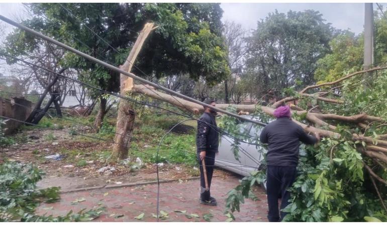 ਚੰਡੀਗੜ੍ਹ : ਪੰਜਾਬ ਭਰ ਵਿੱਚ ਤੇਜ਼ ਹਵਾਵਾਂ ਦੇ ਨਾਲ ਭਾਰੀ ਮੀਂਹ ਕਾਰਨ ਰਾਜ ਦੇ ਕਈ ਹਿੱਸਿਆਂ ਵਿੱਚ ਬਿਜਲੀ ਸਪਲਾਈ ਪ੍ਰਭਾਵਿਤ ਹੋਈ। ਦੱਸਣਯੋਗ ਹੈ ਕਿ ਸਪਲਾਈ ਬੰਦ ਹੋਣ ਦਾ ਮੁੱਖ ਕਾਰਨ ਬਿਜਲੀ ਦੀਆਂ ਲਾਈਨਾਂ 'ਤੇ ਦਰੱਖਤ ਡਿੱਗਣਾ ਹੈ, ਜਿਸ ਨਾਲ ਖੰਭੇ ਅਤੇ ਟ੍ਰਾਂਸਫਾਰਮਰ ਢਾਂਚਿਆਂ ਦਾ ਨੁਕਸਾਨ ਹੋਇਆ ।