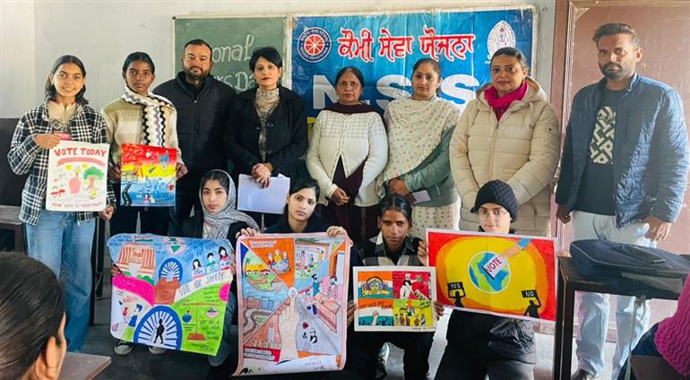 ਸੁਨਾਮ : ਪੰਜਾਬੀ ਯੂਨੀਵਰਸਿਟੀ ਪਟਿਆਲਾ ਐਨਐਸਐਸ ਅਤੇ ਜ਼ਿਲ੍ਹਾ ਚੋਣ ਅਫਸਰ ਸੰਗਰੂਰ ਦੇ ਆਦੇਸ਼ਾਂ ਅਨੁਸਾਰ ਪ੍ਰਿੰਸੀਪਲ ਡੀਡੀਓ ਰੋਮੀ ਗਰਗ ਦੀ ਰਹਿਨੁਮਾਈ ਹੇਠ ਐਨਐਸਐਸ ਵਿਭਾਗ ਅਤੇ ਈਐਲਸੀ ਸੈੱਲ ਵੱਲੋਂ ਸ਼ਹੀਦ ਊਧਮ ਸਿੰਘ ਸਰਕਾਰੀ ਕਾਲਜ ਵਿਖੇ ਨੈਸ਼ਨਲ ਵੋਟਰ ਡੇਅ ਮਨਾਇਆ ਗਿਆ। ਇਸ ਮੌਕੇ ਤਰਕ ਵਿਤਰਕ, ਲੇਖ ਅਤੇ ਪੋਸਟਰ ਮੇਕਿੰਗ ਮੁਕਾਬਲੇ ਕਰਵਾਏ ਗਏ। ਪ੍ਰੋਗਰਾਮ ਦਾ ਆਰੰਭ ਵਾਈਸ ਪ੍ਰਿੰਸੀਪਲ ਡਾਕਟਰ ਅਚਲਾ ਸਿੰਗਲਾ ਵੱਲੋਂ ਕੀਤਾ ਗਿਆ। ਜਿਸ ਦੌਰਾਨ ਉਨਾਂ ਨੇ ਵਲੰਟੀਅਰਜ ਨੂੰ ਆਪਣੀ ਵੋਟ ਦੇ ਅਧਿਕਾਰ ਬਾਰੇ ਜਾਣੂੰ ਕਰਵਾਇਆ। ਐਨਐਸਐਸ ਪ੍ਰੋਗਰਾਮ ਅਫਸਰ ਡਾਕਟਰ ਮੁਨੀਤਾ ਜੋਸ਼ੀ ਅਤੇ ਈ ਐਲਸੀ ਸੈਲ ਇੰਚਾਰਜ ਡਾਕਟਰ ਧਰਮਿੰਦਰ ਸਿੰਘ ਨੇ ਵੀ ਮੇਰੀ ਵੋਟ ਮੇਰਾ ਅਧਿਕਾਰ ਵਿਸ਼ੇ ਤੇ ਵਲੰਟੀਅਰ ਨਾਲ ਆਪਣੇ ਵਿਚਾਰ ਸਾਂਝੇ ਕੀਤੇ। ਪੋਸਟਰ ਮੇਕਿੰਗ ਮੁਕਾਬਲੇ ਵਿੱਚ ਰਮਨਦੀਪ ਕੌਰ ਪਹਿਲਾ, ਸੁਨੈਨਾ ਦੂਸਰਾ, ਪੂਨਮ ਰਾਣੀ ਤੀਸਰਾ, ਲਵਪ੍ਰੀਤ ਕੌਰ ਨੇ ਚੌਥਾ ਸਥਾਨ ਹਾਸਲ ਕੀਤਾ। ਲੇਖ ਮੁਕਾਬਲੇ ਵਿੱਚ ਮੁਸਕਾਨ ਅਤੇ ਪੰਥਪ੍ਰੀਤ ਸਿੰਘ ਪਹਿਲਾ, ਲਵਪ੍ਰੀਤ ਕੌਰ ਦੂਸਰਾ , ਰਮਨਦੀਪ ਕੌਰ ਤੀਸਰੇ ਸਥਾਨ ਤੇ ਰਹੀ। ਤਰਕ ਵਿਤਰਕ ਮੁਕਾਬਲੇ ਵਿੱਚ ਰਮਨਪ੍ਰੀਤ ਕੌਰ ਪਹਿਲਾ, ਰਾਧਿਕਾ ਦੂਸਰਾ, ਖੁਸ਼ਪ੍ਰੀਤ ਕੌਰ ਤੀਸਰਾ, ਜਸਪ੍ਰੀਤ ਕੌਰ ਚੌਥੇ ਸਥਾਨ ਤੇ ਰਹੇ। ਪ੍ਰੋਗਰਾਮ ਦੇ ਅਖੀਰ ਵਿੱਚ ਸਮੂਹ ਕਾਲਜ ਸਟਾਫ ਅਤੇ ਵਲੰਟੀਅਰਜ਼ ਵੱਲੋਂ ਵੋਟ ਤੇ ਸੌ ਚੁੱਕੀ ਗਈ। ਇਸ ਮੌਕੇ ਜੱਜਾਂ ਦੀ ਭੂਮਿਕਾ ਡਾਕਟਰ ਪਰਮਿੰਦਰ ਕੌਰ ਧਾਲੀਵਾਲ , ਡਾਕਟਰ ਕੁਲਦੀਪ ਸਿੰਘ ਬਾਹੀਆ ਅਤੇ ਡਾਕਟਰ ਮੀਨਾਕਸ਼ੀ ਪੁਰੀ ਵੱਲੋਂ ਨਿਭਾਈ ਗਈ।