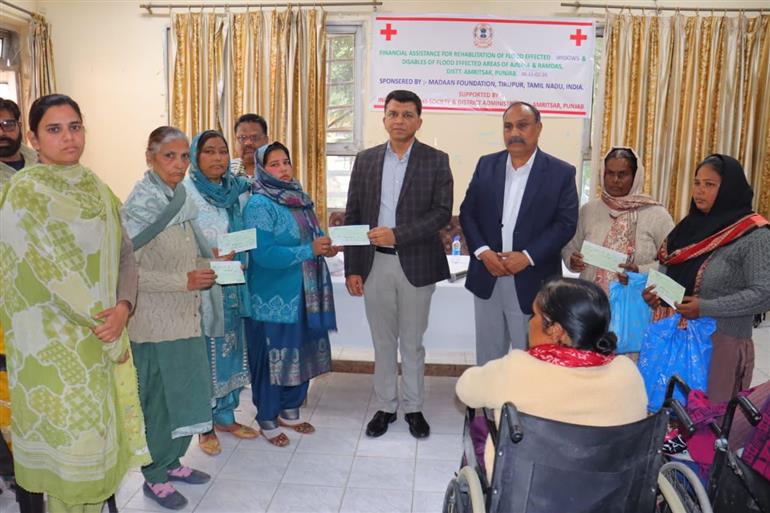 ਅੰਮ੍ਰਿਤਸਰ, (ਦਵਿੰਦਰ ਕੁਮਾਰ ਪੁਰੀ ) : ਸ਼੍ਰੀ ਦਲਵਿੰਦਰਜੀਤ ਸਿੰਘ, ਡਿਪਟੀ ਕਮਿਸ਼ਨਰ ਦੀ ਅਗਵਾਈ ਹੇਠ ਰੈਡ ਕਰਾਸ ਸੋਸਾਇਟੀ,ਅੰਮ੍ਰਿਤਸਰ ਵੱਲੋ ਹੜ੍ਹ ਪੀੜਤ ਵਿਧਵਾਵਾਂ ਅਤੇ ਅਪਾਹਜਾਂ ਦੇ ਮੁੜ ਵਸੇਬੇ ਨੂੰ ਧਿਆਨ ਵਿੱਚ ਰੱਖਦਿਆ ਇੱਕ ਰਲੀਫ ਵੰਡ ਸਮਾਰੋਹ ਰੈਡ ਕਰਾਸ ਭਵਨ ਆਯੋਜਿਤ ਕੀਤਾ ਗਿਆ । ਇਸ ਸਮਾਰੋਹ ਵਿੱਚ 30 ਵਿਧਵਾਵਾਂ ਅਤੇ 9 ਅਪਾਹਜਾਂ ਨੂੰ ਰਾਹਤ ਵਜੋ 10-10 ਹਜਾਰ ਰੁਪਏ ਦੀ ਵਿੱਤੀ ਸਹਾਇਤਾ ਪ੍ਰਦਾਨ ਕੀਤੀ ਗਈ । ਇਸ ਸਮਾਰੋਹ ਦੇ ਮੁੱਖ ਮਹਿਮਾਨ ਸ੍ਰੀ ਰੋਹਿਤ ਗੁਪਤਾ ਵਧੀਕ ਡਿਪਟੀ ਕਮਿਸ਼ਨਰ (ਜ),ਅੰਮ੍ਰਿਤਸਰ ਨੇ ਕਿਹਾ ਕਿ ਹੜ੍ਹ ਪੀੜ੍ਹਤ ਵਿਧਵਾਵਾਂ ਅਤੇ ਅਪਾਹਿਜਾਂ ਦਾ ਮੁੜ ਵਸੇਬਾ ਪ੍ਰਸ਼ਾਸਨ ਅਤੇ ਰੈਡ ਕਰਾਸ ਦੀ ਪ੍ਰਾਥਮਿਕਤਾ ਹੈ ਜਿਸ ਲਈ ਰੈਡ ਕਰਾਸ ਸੁਸਾਇਟੀ ਜਿਲ੍ਹਾ ਪ੍ਰਸ਼ਾਸਨ ਦੀ ਅਗਵਾਈ ਹੇਠ ਗਤੀਸ਼ੀਲ ਹੈ ਅਤੇ ਸਮੇਂ ਸਮੇਂ ਤੇ ਲੋੜ ਅਨੁਸਾਰ ਲੋੜਵੰਦਾਂ ਦੀ ਹਰ ਸੰਭਵ ਸਹਾਇਤਾ ਕਰ ਰਹੀ ਹੈ । ਇਸ ਮੌਕੇ ਤੇ ਸ਼੍ਰੀ ਸੈਮਸਨ ਮਸੀਹ, ਸਕੱਤਰ, ਰੈਡ ਕਰਾਸ ਨੇ ਦੱਸਿਆ ਕਿ ਸ਼੍ਰੀ ਭੁਪਿੰਦਰ ਮਦਾਨ, ਫਾਊਡਰ (Madan Foundation ਨੇ ਤਾਮਿਲਨਾਡੂ ਤੋ Jay Hosiery, CBSS Creation LLP, JP Clothing's Pvt Ltd, Smart Knitwear, Dollar Foundation, Rotary Tirupur Prime Trust, Prasanna Parvatikar, KRC Infrastructures and Real Estate Ltd, Aditi Creation) ਮਦਨ ਫਾਊਂਡੇਸ਼ਨ ਨੇ ਤਾਮਿਲਨਾਡੂ ਤੋਂ ਜੇ ਹੋਜ਼ਰੀ, ਸੀਬੀਐਸਐਸ ਕ੍ਰੀਏਸ਼ਨ ਐਲਐਲਪੀ, ਜੇਪੀ ਕਲੋਥਿੰਗਜ਼ ਪ੍ਰਾਈਵੇਟ ਲਿਮਿਟਡ, ਸਮਾਰਟ ਨਿੱਟਵੇਅਰ, ਡਾਲਰ ਫਾਊਂਡੇਸ਼ਨ, ਰੋਟਰੀ ਤਿਰੁਪੁਰ ਪ੍ਰਾਈਮ ਟਰੱਸਟ, ਪ੍ਰਸੰਨਾ ਪਰਵਤਿਕਰ, ਕੇਆਰਸੀ ਇਨਫ੍ਰਾਸਟਰਕਚਰਜ਼ ਐਂਡ ਰੀਅਲ ਐਸਟੇਟ ਲਿਮਿਟਡ ਅਤੇ ਆਦਿਤੀ ਕ੍ਰੀਏਸ਼ਨ ਦੇ ਸਹਿਯੋਗ ਨਾਲ ਰੈਡ ਕਰਾਸ ਸੁਸਾਇਟੀ,ਅੰਮ੍ਰਿਤਸਰ ਨੂੰ 4,10,000/- ਰੁਪਏ ਦੀ ਰਾਸ਼ੀ ਹੜ੍ਹ ਪੀੜ੍ਹਤ ਵਿਧਵਾਵਾਂ ਅਤੇ ਅਪਾਹਿਜਾ ਨੂੰ ਮੁੜ ਵਸੇਬੇ ਲਈ ਵੰਡ ਲਈ ਭੇਜੀ ਹੈ। ਇਸ ਮਦਦ ਲਈ ਜਿਲ੍ਹਾ ਪ੍ਰਸ਼ਾਸਨ ਨੇ ਅਤੇ ਰੈਡ ਕਰਾਸ ਨੇ ਇਨ੍ਹਾ ਸਾਰਿਆ ਸੰਸਥਾਵਾ ਦਾ ਧੰਨਵਾਦ ਕੀਤਾ ।