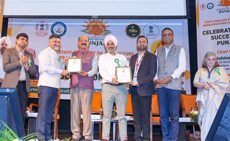 ਚੰਡੀਗੜ੍ਹ : ਪੰਜਾਬ ਦੇ ਮੁੱਖ ਮੰਤਰੀ ਭਗਵੰਤ ਸਿੰਘ ਮਾਨ ਦੀ ਅਗਵਾਈ ਵਾਲੀ ਸੂਬਾ ਸਰਕਾਰ ਦੌਰਾਨ ਖੇਤੀਬਾੜੀ ਬੁਨਿਆਦੀ ਢਾਂਚੇ ਦੇ ਵਿਕਾਸ ਲਈ ਪੰਜਾਬ ਦੇਸ਼ ਭਰ ਚੋਂ ਮੋਹਰੀ ਸੂਬਾ ਬਣ ਕੇ ਉਭਰਿਆ ਹੈ। ਪੰਜਾਬ ਦੇ ਬਾਗਬਾਨੀ ਵਿਭਾਗ ਦੁਆਰਾ ਅੱਜ ਚੰਡੀਗੜ੍ਹ ਵਿਖੇ ਆਯੋਜਿਤ ਰਾਜ ਪੱਧਰੀ ਏਆਈਐਫ ਸੰਮੇਲਨ ਅਤੇ ਸਨਮਾਨ ਸਮਾਗ਼ਮ ਵਿੱਚ ਬਾਗਬਾਨੀ ਮੰਤਰੀ ਸ੍ਰੀ ਮੋਹਿੰਦਰ ਭਗਤ ਨੇ ਮੁੱਖ ਮਹਿਮਾਨ ਵੱਜੋਂ ਸ਼ਿਰਕਤ ਕੀਤੀ।