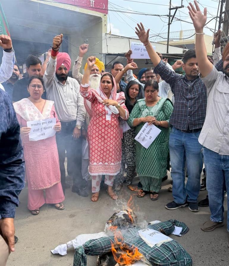 ਸੁਨਾਮ : ਪੰਜਾਬ ਵੇਅਰ ਹਾਊਸ ਦੇ ਜ਼ਿਲ੍ਹਾ ਮੈਨੇਜਰ ਡਾਕਟਰ ਗਗਨਦੀਪ ਸਿੰਘ ਰੰਧਾਵਾ ਵੱਲੋਂ ਕੀਤੀ ਖੁਦਕੁਸ਼ੀ ਲਈ ਕਥਿਤ ਤੌਰ ਤੇ ਜਿੰਮੇਵਾਰ ਆਮ ਆਦਮੀ ਪਾਰਟੀ ਦੇ ਵਿਧਾਇਕ ਅਤੇ ਸਾਬਕਾ ਮੰਤਰੀ ਲਾਲਜੀਤ ਸਿੰਘ ਭੁੱਲਰ ਸਮੇਤ ਹੋਰਨਾਂ ਨੂੰ ਗ੍ਰਿਫ਼ਤਾਰ ਕਰਨ ਦੀ ਮੰਗ ਨੂੰ ਲੈਕੇ ਸੋਮਵਾਰ ਨੂੰ ਸੁਨਾਮ ਵਿਖੇ ਭਾਜਪਾ ਜ਼ਿਲ੍ਹਾ ਸੰਗਰੂਰ ਦੀ ਪ੍ਰਧਾਨ ਦਾਮਨ ਬਾਜਵਾ ਦੀ ਅਗਵਾਈ ਹੇਠ ਇਕੱਠੇ ਹੋਏ ਭਾਜਪਾਈਆਂ ਨੇ ਮੁੱਖ ਮੰਤਰੀ ਭਗਵੰਤ ਮਾਨ ਅਤੇ ਆਮ ਆਦਮੀ ਪਾਰਟੀ ਦੇ ਸੂਬਾ ਪ੍ਰਧਾਨ ਅਮਨ ਅਰੋੜਾ ਦੇ ਪੁਤਲੇ ਫੂਕੇ ਗਏ। ਇਸ ਮੌਕੇ ਜ਼ਿਲ੍ਹਾ ਪ੍ਰਧਾਨ ਦਾਮਨ ਬਾਜਵਾ, ਹਰਮਨਦੇਵ ਸਿੰਘ ਬਾਜਵਾ ਅਤੇ ਸ਼ੇਰ ਵਿੰਦਰ ਸਿੰਘ ਧਾਲੀਵਾਲ ਨੇ ਮੁੱਖ ਮੰਤਰੀ ਤੋਂ ਅਸਤੀਫ਼ੇ ਦੀ ਮੰਗ ਕਰਦਿਆਂ ਕਿਹਾ ਕਿ ਸੂਬੇ ਅੰਦਰ ਹਾਕਮ ਧਿਰ ਦੇ ਆਗੂਆਂ ਵੱਲੋਂ ਉੱਚ ਅਧਿਕਾਰੀਆਂ ਪਾਸੋਂ ਗ਼ਲਤ ਕੰਮ ਕਰਵਾਉਣ ਲਈ ਧਮਕਾਇਆ ਜਾ ਰਿਹਾ ਹੈ। ਉਨ੍ਹਾਂ ਕਿਹਾ ਕਿ ਪੰਜਾਬ ਅੰਦਰ ਹਾਸ਼ੀਏ ਤੇ ਜਾ ਚੁੱਕੀ ਆਮ ਆਦਮੀ ਪਾਰਟੀ ਦੀ ਸਰਕਾਰ ਵਿੱਚ ਸ਼ਾਮਿਲ ਮੰਤਰੀ ਅਤੇ ਵਿਧਾਇਕ ਕਥਿਤ ਤੌਰ ਤੇ ਲੁੱਟ ਖਸੁੱਟ ਕਰਨ ਤੇ ਉਤਾਰੂ ਹੋ ਰਹੇ ਹਨ ਜਦਕਿ ਉੱਚ ਅਧਿਕਾਰੀ ਸਰਕਾਰ ਦੇ ਨੁਮਾਇੰਦਿਆਂ ਨੂੰ ਅਜਿਹਾ ਕਰਨ ਤੋਂ ਨਾਂਹ ਕਰ ਰਹੇ ਹਨ। ਜ਼ਿਲ੍ਹਾ ਪ੍ਰਧਾਨ ਦਾਮਨ ਬਾਜਵਾ ਅਤੇ ਹਰਮਨਦੇਵ ਸਿੰਘ ਬਾਜਵਾ ਨੇ ਆਖਿਆ ਕਿ ਸੂਬੇ ਵਿੱਚ ਇੱਕ ਹੋਰ ਪੀਸੀਐਸ ਅਧਿਕਾਰੀ ਰਾਜ ਦੇ ਪ੍ਰਮੁੱਖ ਸਕੱਤਰ ਨੂੰ ਪੱਤਰ ਲਿਖਕੇ ਇੱਕ ਮੌਜੂਦਾ ਵਿਧਾਇਕ ਵੱਲੋਂ ਤੰਗ ਪ੍ਰੇਸਾਨ ਕਰਨ ਦੀ ਗੁਹਾਰ ਲਾ ਰਹੇ ਹਨ। ਅਜਿਹੇ ਵਰਤਾਰੇ ਨੇ ਅਫ਼ਸਰਸ਼ਾਹੀ ਅੰਦਰ ਖ਼ੌਫ਼ ਦਾ ਮਾਹੌਲ ਪੈਦਾ ਕੀਤਾ ਹੋਇਆ ਹੈ। ਪ੍ਰਦਰਸ਼ਨਕਾਰੀਆਂ ਨੇ ਵਿਧਾਇਕ ਲਾਲਜੀਤ ਸਿੰਘ ਭੁੱਲਰ, ਉਸਦੇ ਪਿਤਾ ਸੁਖਦੇਵ ਸਿੰਘ ਭੁੱਲਰ ਅਤੇ ਪੀਏ ਦਿਲਬਾਗ ਸਿੰਘ ਨੂੰ ਤੁਰੰਤ ਗ੍ਰਿਫ਼ਤਾਰ ਕਰਨ ਦੀ ਮੰਗ ਕੀਤੀ ਹੈ। ਇਸ ਮੌਕੇ ਮੰਡਲ ਪ੍ਰਧਾਨ ਰਾਜੀਵ ਕੁਮਾਰ ਮੱਖਣ, ਚੰਦ ਸਿੰਘ ਚੱਠਾ, ਰਣਧੀਰ ਸਿੰਘ ਕਲੇਰ, ਸਾਬਕਾ ਕੌਂਸਲਰ ਮੋਨਿਕਾ ਗੋਇਲ, ਸ਼ੰਕਰ ਬਾਂਸਲ, ਰਾਂਝਾ ਬਖਸ਼ੀ, ਸੰਦੀਪ ਸ਼ਰਮਾ, ਓਬੀਸੀ ਮੋਰਚਾ ਰਵਿੰਦਰ ਰਵੀ, ਐਸ ਸੀ ਮੋਰਚਾ ਬਚਿੱਤਰ ਚੱਠਾ, ਸੱਤਪਾਲ ਸਿੰਗਲਾ, ਵਿਜੇ ਗੋਇਲ ਲੌਂਗੋਵਾਲ, ਦਰਸਨ ਸਿੰਘ ਨਮੋਲ, ਨਰਿੰਦਰ ਸ਼ੇਰੋਂ, ਜਗਸੀਰ ਦਾਸ, ਗਿਆਨ ਸੈਣੀ, ਸੁਰੇਸ਼ ਰਾਠੀ, ਸੋਹਨ ਲਾਲ, ਰਾਮ ਦਿਆਲ ਸ਼ਰਮਾ, ਗੁਰਤੇਜ ਸਿੰਘ, ਜਤਿੰਦਰ ਸਿੰਘ, ਧੀਰਜ ਗੋਇਲ, ਰਜਤ ਸ਼ਰਮਾ ਆਦਿ ਹਾਜ਼ਰ ਸਨ।
