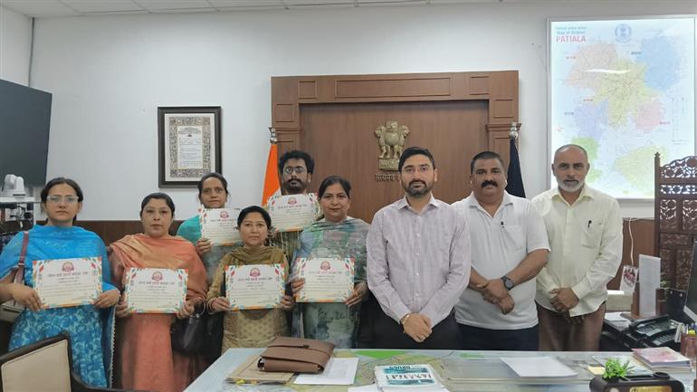 ਫੋਟੋ ਕੈਪਸਨ, ਡਿਪਟੀ ਕਮਿਸ਼ਨਰ ਪਟਿਆਲਾ ਵਰਜੀਤ ਵਾਲੀਆ ਪੰਜਾਬ ਰੈਡ ਕਰਾਸ ਸਾਕੇਤ ਹਸਪਤਾਲ ਦੇ ਪ੍ਰੋਜੈਕਟ ਡਾਇਰੈਕਟਰ ਪਰਮਿੰਦਰ ਕੌਰ ਮਨਚੰਦਾ ਅਤੇ ਉਹਨਾਂ ਦੀ ਟੀਮ ਨੂੰ ਸਨਮਾਨਿਤ ਕਰਦੇ ਹੋਏ ਨਾਲ ਸਟੇਟ ਐਵਾਰਡੀ ਪਰਮਿੰਦਰ ਭਲਵਾਨ ।