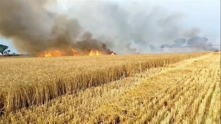 ਫੋਟੋ ਕੈਪਸ਼ਨ : ਕਣਕ ਦੀ ਫਸਲ ਵਿੱਚ ਲੱਗੀ ਹੋਈ ਅੱਗ।