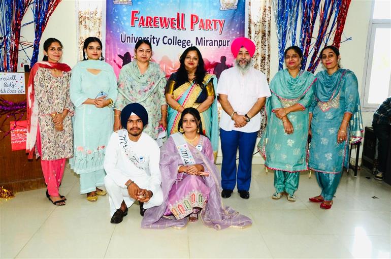 ਕੈਪਸ਼ਨ : ਯੂਨੀਵਰਸਿਟੀ ਕਾਲਜ ਮੀਰਾਂਪੁਰ ਦੇ ਇੰਚਾਰਜ ਡਾ. ਮਨਪ੍ਰੀਤ ਕੌਰ ਅਤੇ ਧਰਮ ਅਧਿਐਨ ਮੰਚ ਦੇ ਕਨਵੀਨਰ ਡਾ. ਤੇਜਿੰਦਰ ਪਾਲ ਸਿੰਘ ਜੇਤੂ ਵਿਦਿਆਰਥੀਆਂ ਨਾਲ।