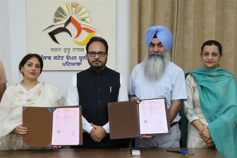 ਪਟਿਆਲਾ : ਜਗਤ ਗੁਰੂ ਨਾਨਕ ਦੇਵ ਪੰਜਾਬ ਸਟੇਟ ਓਪਨ ਯੂਨੀਵਰਸਿਟੀ (JGND PSOU), ਪਟਿਆਲਾ ਵੱਲੋਂ ਯੂਨੀਵਰਸਿਟੀ ਦੇ ਪ੍ਰਸ਼ਾਸਕੀ ਬਲਾਕ ਵਿੱਚ ਆਯੋਜਿਤ ਇਕ ਸਰਕਾਰੀ ਸਮਾਰੋਹ ਦੌਰਾਨ ਪੰਜਾਬ ਯੋਗਾਸਨ ਸਪੋਰਟਸ ਐਸੋਸੀਏਸ਼ਨ (PYSA) ਨਾਲ ਸਮਝੌਤਾ ਪੱਤਰ (MoU) 'ਤੇ ਦਸਤਖਤ ਕੀਤੇ ਗਏ। ਇਹ ਸਮਾਰੋਹ ਮਾਣਯੋਗ ਵਾਈਸ ਚਾਂਸਲਰ ਪ੍ਰੋ. (ਡਾ.) ਰਤਨ ਸਿੰਘ ਦੀ ਅਗਵਾਈ ਹੇਠ ਕਰਵਾਇਆ ਗਿਆ। JGND PSOU ਦੀ ਓਰੋਂ ਡਾ. ਬਲਜੀਤ ਸਿੰਘ ਖੇਹਰਾ, ਰਜਿਸਟਰਾਰ, ਅਤੇ ਡਾ. ਅਮਿਤੋਜ ਸਿੰਘ, ਐਸੋਸੀਏਟ ਡੀਨ (ਅਕਾਦਮਿਕ ਮਾਮਲੇ), ਵੱਲੋਂ MoU 'ਤੇ ਦਸਤਖਤ ਕੀਤੇ ਗਏ। ਇਸ ਦੀ ਕੋਆਰਡੀਨੇਸ਼ਨ ਡਾ. ਕਰਨ ਸੁਖੀਜਾ, ਡਾਇਰੈਕਟਰ, ਪਲਾਨਿੰਗ ਐਂਡ ਡਿਵੈਲਪਮੈਂਟ ਡਿਵੀਜ਼ਨ ਵੱਲੋਂ ਕੀਤੀ ਗਈ। ਪੰਜਾਬ ਯੋਗਾਸਨ ਸਪੋਰਟਸ ਐਸੋਸੀਏਸ਼ਨ ਦੀ ਓਰੋਂ ਡਾ. ਅਕਾਲਕਲਾ ਸੇਖਵਾਂ (ਪ੍ਰਧਾਨ), ਡਾ. ਚੰਦਰਕਾਂਤ ਮਿਸ਼ਰਾ, ਸ੍ਰੀ ਸਰਬਜੀਤ ਸਿੰਘ ਅਤੇ ਸ੍ਰੀਮਤੀ ਸੁਨੀਤਾ ਵਰਮਾ ਵੱਲੋਂ MoU 'ਤੇ ਦਸਤਖਤ ਕੀਤੇ ਗਏ। ਇਸ MoU ਦਾ ਉਦੇਸ਼ ਯੋਗਾਸਨ ਨੂੰ ਇੱਕ ਖੇਡ ਵਜੋਂ ਉਤਸ਼ਾਹਿਤ ਕਰਨਾ ਅਤੇ ਇਸਨੂੰ ਅਕਾਦਮਿਕ ਅਤੇ ਹੁਨਰ-ਅਧਾਰਿਤ ਸਿੱਖਿਆ ਨਾਲ ਜੋੜਨਾ ਹੈ। ਇਸ ਸਹਿਯੋਗ ਤਹਿਤ ਟ੍ਰੇਨਿੰਗ ਪ੍ਰੋਗਰਾਮ, ਵਰਕਸ਼ਾਪਾਂ, ਸਰਟੀਫਿਕੇਟ ਕੋਰਸ ਅਤੇ ਜਾਗਰੂਕਤਾ ਮੁਹਿੰਮਾਂ ਆਯੋਜਿਤ ਕੀਤੀਆਂ ਜਾਣਗੀਆਂ, ਤਾਂ ਜੋ ਵਿਦਿਆਰਥੀਆਂ ਅਤੇ ਸਮਾਜ ਦੀ ਸ਼ਾਰੀਰਿਕ ਅਤੇ ਮਾਨਸਿਕ ਸਿਹਤ ਵਿੱਚ ਸੁਧਾਰ ਲਿਆਇਆ ਜਾ ਸਕੇ। ਇਸ ਮੌਕੇ ਮਾਣਯੋਗ ਵਾਈਸ ਚਾਂਸਲਰ ਨੇ ਸਮੱਗਰੀਕ ਸਿੱਖਿਆ ਨੂੰ ਉਤਸ਼ਾਹਿਤ ਕਰਨ ਅਤੇ ਸਿਹਤਮੰਦ ਜੀਵਨਸ਼ੈਲੀ ਨੂੰ ਪ੍ਰੋਤਸਾਹਿਤ ਕਰਨ ਵਿੱਚ ਅਜਿਹੇ ਸਹਿਯੋਗਾਂ ਦੀ ਮਹੱਤਤਾ ਬਾਰੇ ਆਪਣੇ ਵਿਚਾਰ ਪ੍ਰਗਟ ਕੀਤੇ। ਉਨ੍ਹਾਂ ਨੇ ਅਕਾਦਮਿਕ ਉਤਕ੍ਰਿਸ਼ਟਤਾ ਅਤੇ ਸਮਾਜਕ ਵਿਕਾਸ ਲਈ ਸੰਸਥਾਗਤ ਸਾਂਝਾਂ ਨੂੰ ਮਜ਼ਬੂਤ ਕਰਨ ਲਈ ਯੂਨੀਵਰਸਿਟੀ ਦੀ ਵਚਨਬੱਧਤਾ ਨੂੰ ਦੁਹਰਾਇਆ। ਇਸ ਸਮਾਰੋਹ ਵਿੱਚ ਯੂਨੀਵਰਸਿਟੀ ਦੇ ਅਧਿਆਪਕ, ਅਧਿਕਾਰੀ ਅਤੇ ਕਰਮਚਾਰੀ ਹਾਜ਼ਰ ਸਨ। ਇਹ ਪਹਲ ਸਾਂਝੇ ਉਪਰਾਲਿਆਂ ਰਾਹੀਂ ਸਿਹਤ, ਹੁਨਰ ਵਿਕਾਸ ਅਤੇ ਖੇਡ ਸੰਸਕ੍ਰਿਤੀ ਨੂੰ ਉਤਸ਼ਾਹਿਤ ਕਰਨ ਵੱਲ ਇੱਕ ਮਹੱਤਵਪੂਰਨ ਕਦਮ ਹੈ।