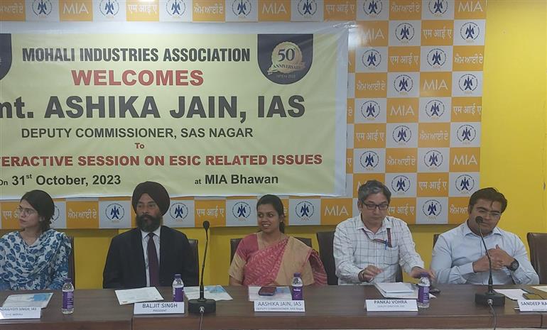 ਐੱਸ.ਏ.ਐੱਸ. ਨਗਰ :- ਮੋਹਾਲੀ ਇੰਡਸਟਰੀਅਲ ਐਸੋਸੀਏਸ਼ਨ ਵੱਲੋਂ ਇੱਥੇ ਆਪਣੇ ਦਫ਼ਤਰ ਵਿਖੇ ਈ.ਐੱਸ.ਆਈ. ਹਸਪਤਾਲ ਸਬੰਧੀ ਕਰਵਾਏ ਇੰਟਰ-ਐਕਟਿਵ ਸੈਸ਼ਨ ਵਿੱਚ ਬਤੌਰ ਮੁੱਖ ਮਹਿਮਾਨ ਸ਼ਿਰਕਤ ਕਰਦਿਆਂ ਡਿਪਟੀ ਕਮਿਸ਼ਨਰ, ਸ਼੍ਰੀਮਤੀ ਆਸ਼ਿਕਾ ਜੈਨ ਨੇ ਕਿਹਾ ਕਿ ਮੋਹਾਲੀ ਦੇ ਈ.ਐੱਸ.ਆਈ. ਹਸਪਤਾਲ ਦੀ ਕਾਇਆ ਕਲਪ ਕੀਤੀ ਜਾਵੇਗੀ। ਇਸੇ ਹਫਤੇ ਆਡਿਟ ਕਰਵਾ ਕੇ ਇਸ ਸਬੰਧੀ ਐਸਟੀਮੇਟ ਤਿਆਰ ਕਰਵਾਉਣ ਉਪਰੰਤ ਅਗਲੇਰੀ ਕਾਰਵਾਈ ਆਰੰਭ ਦਿੱਤੀ ਜਾਵੇਗੀ।