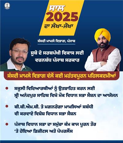 ਪੰਜਾਬ ਵਿਧਾਨ ਸਭਾ ਦੇ ਸਪੀਕਰ ਸ. ਕੁਲਤਾਰ ਸਿੰਘ ਸੰਧਵਾਂ ਨੇ ਪੰਜਾਬ ਦੇ ਲੋਕਾਂ ਨੂੰ ਨਵੇਂ ਸਾਲ 2026 ਦੀ ਵਧਾਈ ਦਿੱਤੀ ਹੈ।
